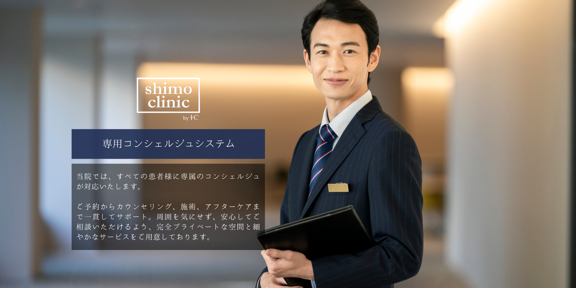 また、すべての患者様に専属のコンシェルジュが対応いたします。ご予約からカウンセリング、施術、アフターケアまで一貫してサポート。周囲を気にせず、安心してご相談いただけるよう、完全プライベートな空間と細やかなサービスをご用意しております。